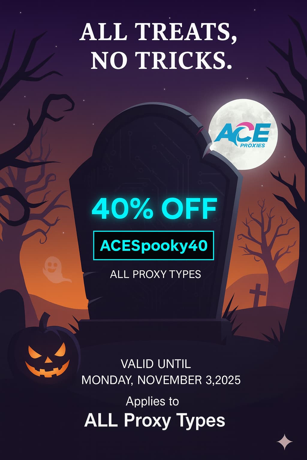 Get a 40% discount on all proxy types with code: ACESpooky40