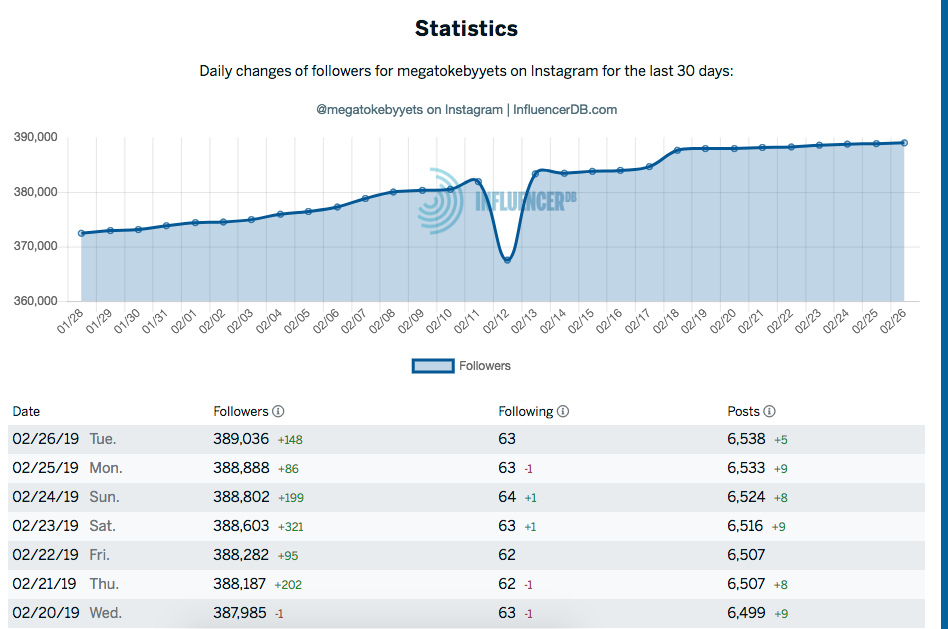Browsing this tool and I pull up a competitor and notice a very peculiar drop of over 14000 followers on 2/12/19, wondering is there a site you all recommend to view changes on instagram for specific date? performed a google search for the date and instagram but couldn’t come up with anything.