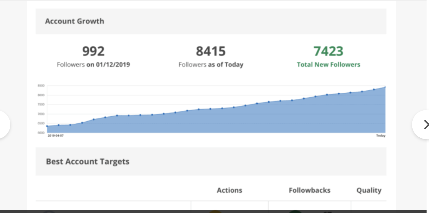 I am primarily interested in the tab that shows best account targets, actions, follow back, quality.