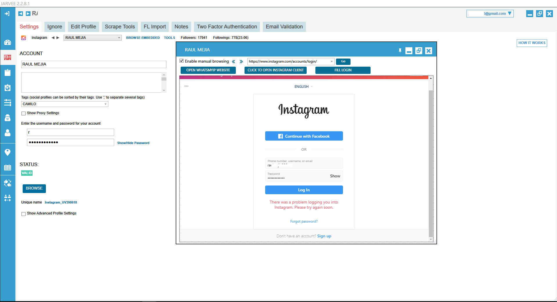 approximately 3 days I have an error in Jarvee,